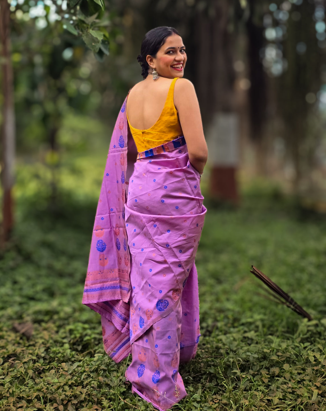 Woven lilac Mekhela Chador from Assam