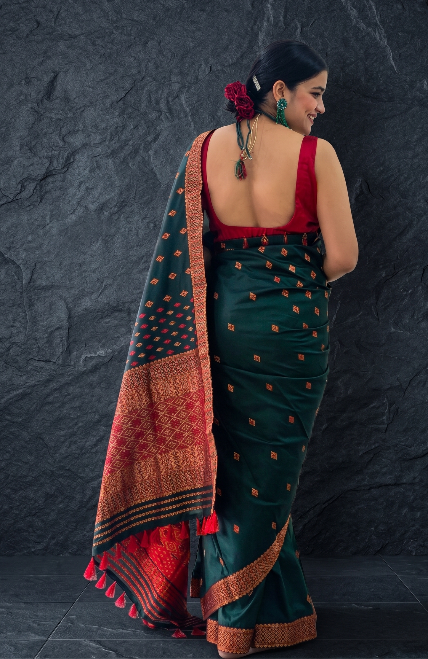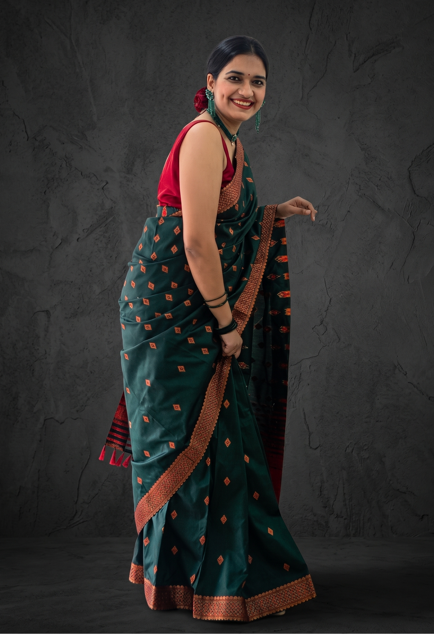 Style Aesthetic: Assam-inspired traditional silk blend saree with contrast pallu